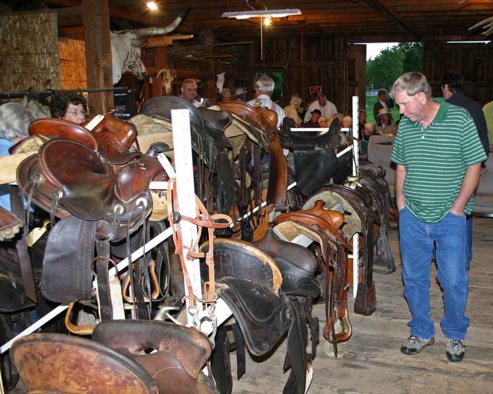 There was an impressive display of more than 100 saddles collected by Arnold Jorgensen, and many were real collector’s items – including one acquired by Melvin Stewart of Burke, South Dakota at Hitler’s ‘Eagle’s Nest” near Berchtesgaden, Germany There were land documents, historical photographs, household items, and farm equipment – including a branding chute crafted by Jorgensen’s grandfather. But perhaps the biggest hit of the evening was the barn itself.“I went up to the courthouse 10 or 15 years ago to do some research on the buildings here, and I didn’t get very far,” said Jorgensen. “I spent five or six hours there. You can just go on forever trying to trace things back. Then this last week, I was a little more successful.”